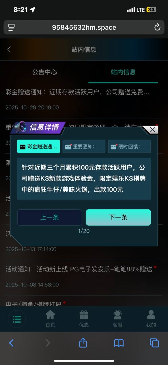 近三个月累计存款达到100的,登陆上去就有新游戏体验金,只能玩新出的那两个游戏,有号的可以去看看。