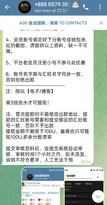 新用户联系飞机客服 @JYGJYLVIP 然后去频道链接注册,绑定流水多的u到账,
