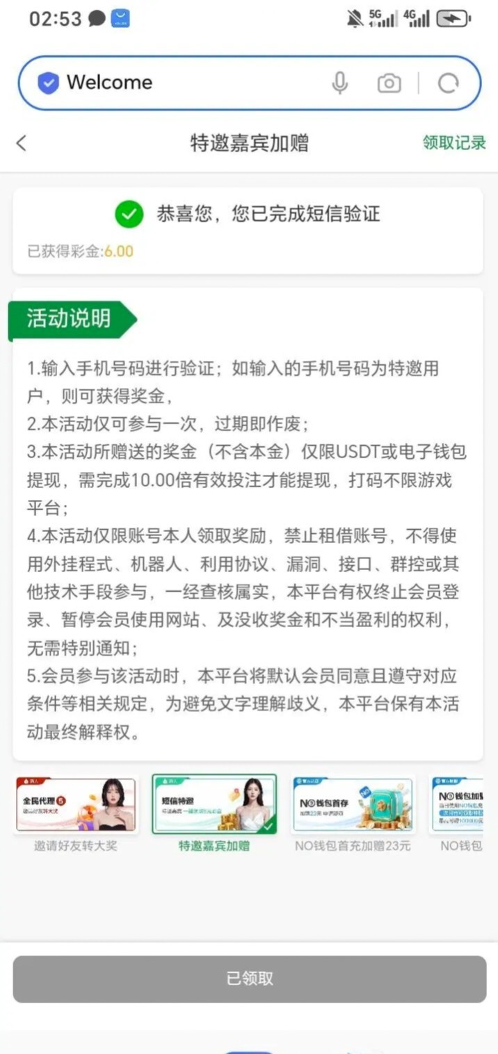 验证自助领取6元,