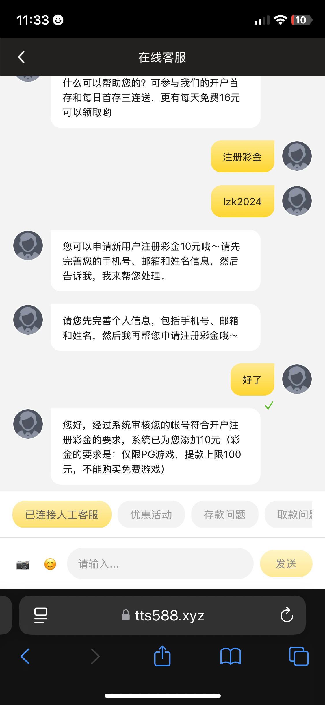 注册绑定信息找客服申请注册10彩金