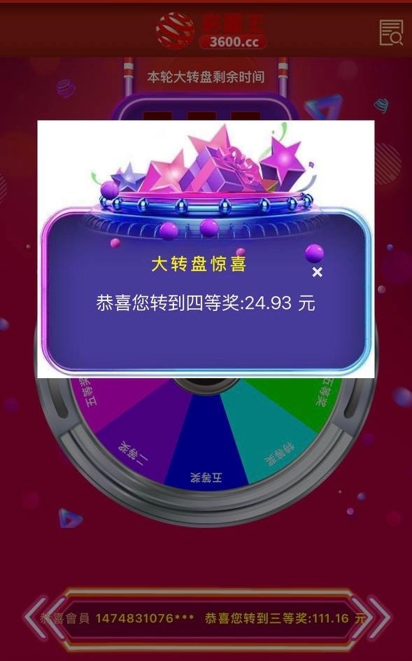 【彩霸王3600】转盘彩金
