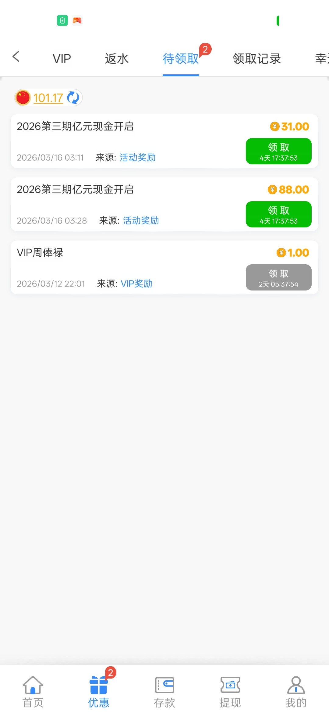 前面注册过的,登录账号上能领取31元,一顿猪脚饭钱,有号上去看一下!